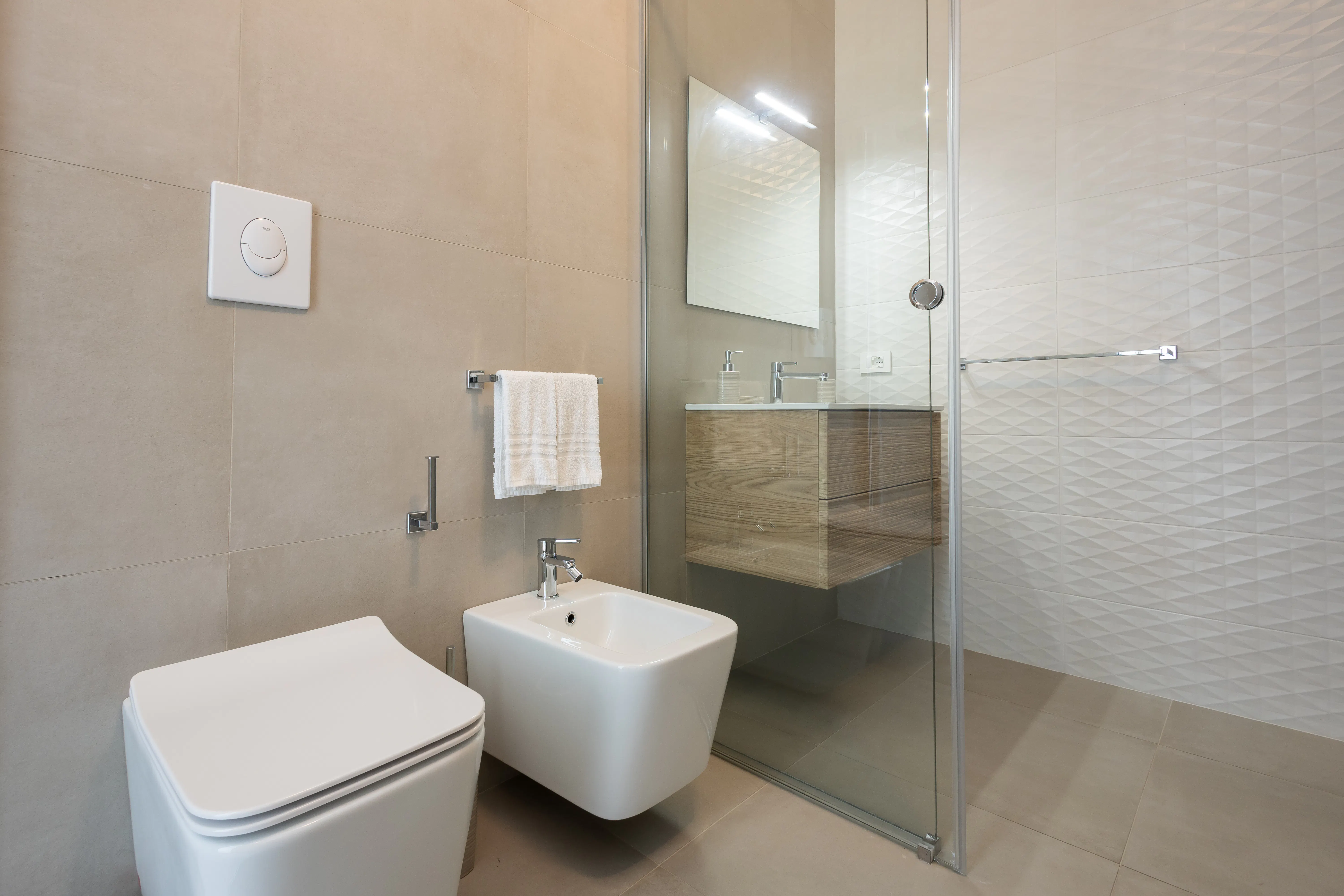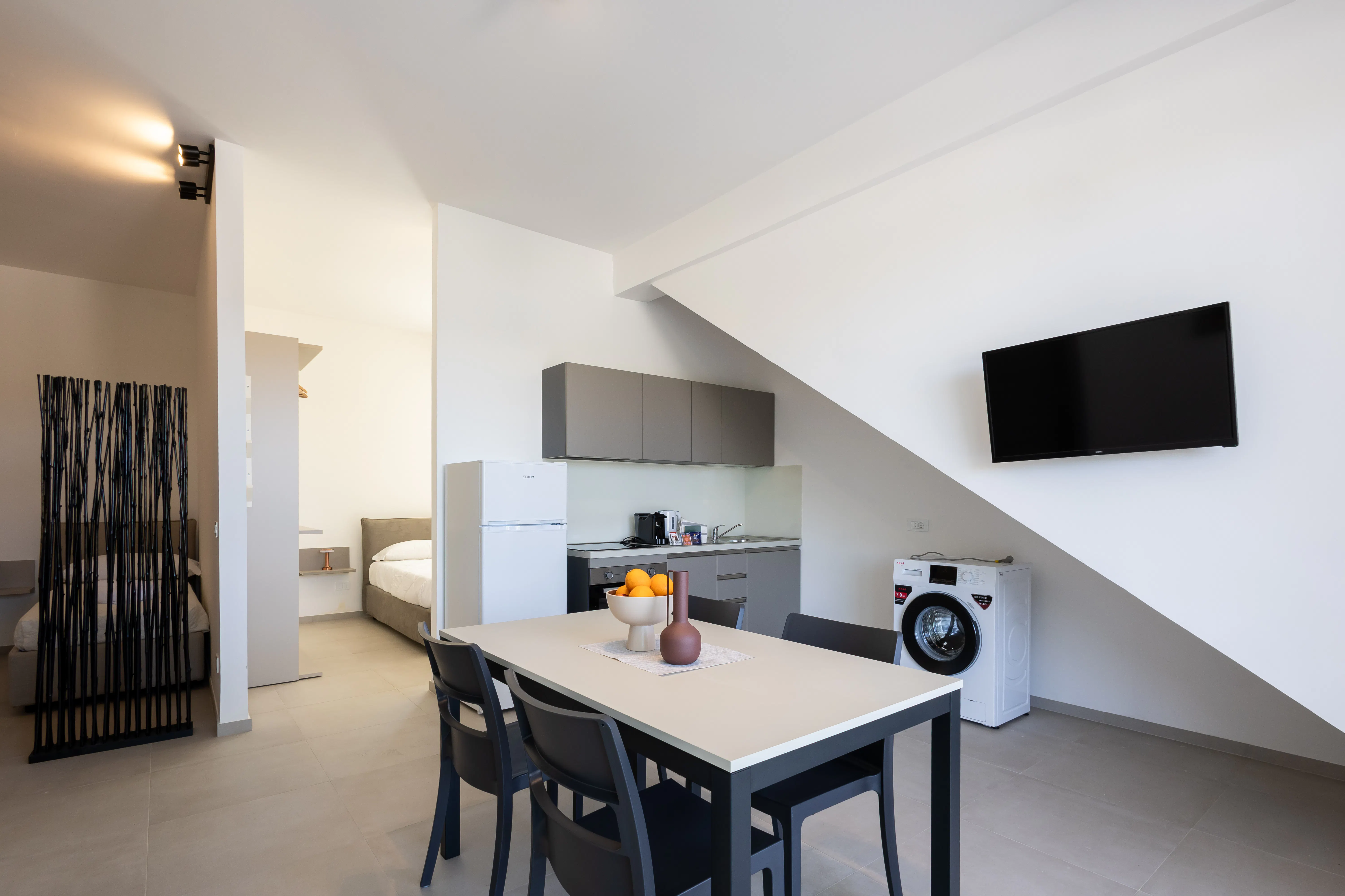 Inside, contemporary design meets homelike warmth — a fully equipped kitchen, cozy air-conditioned rooms, and a private bathroom with a spacious shower and complimentary toiletries. Every detail is crafted to make you feel at home, surrounded by elegance and simplicity.